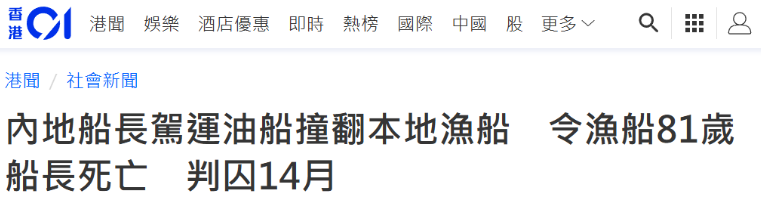 油轮撞沉渔船!一中国船长被判处监禁14个月 2026.01.05