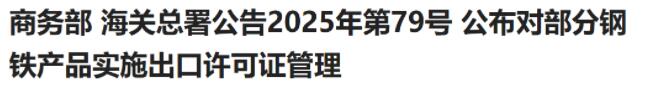 重磅!2026年1月1日起部分钢铁产品实施出口许可证管理 2025.12.15