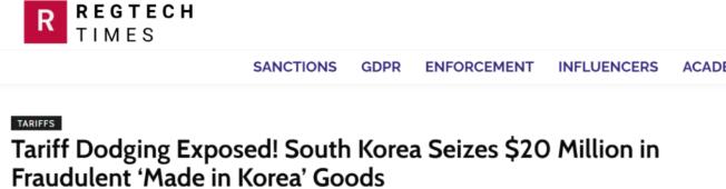 约1.5亿中国产品在韩国被查扣!转口贸易被严查 2025.04.25